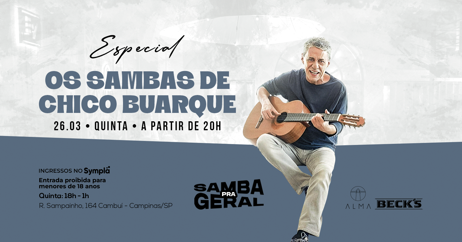 O Samba pra Geral apresenta, no dia 26 de março, na quinta, um especial dedicado aos sambas de Chico Buarque, um dos maiores nomes da música brasileira e compositor nato.