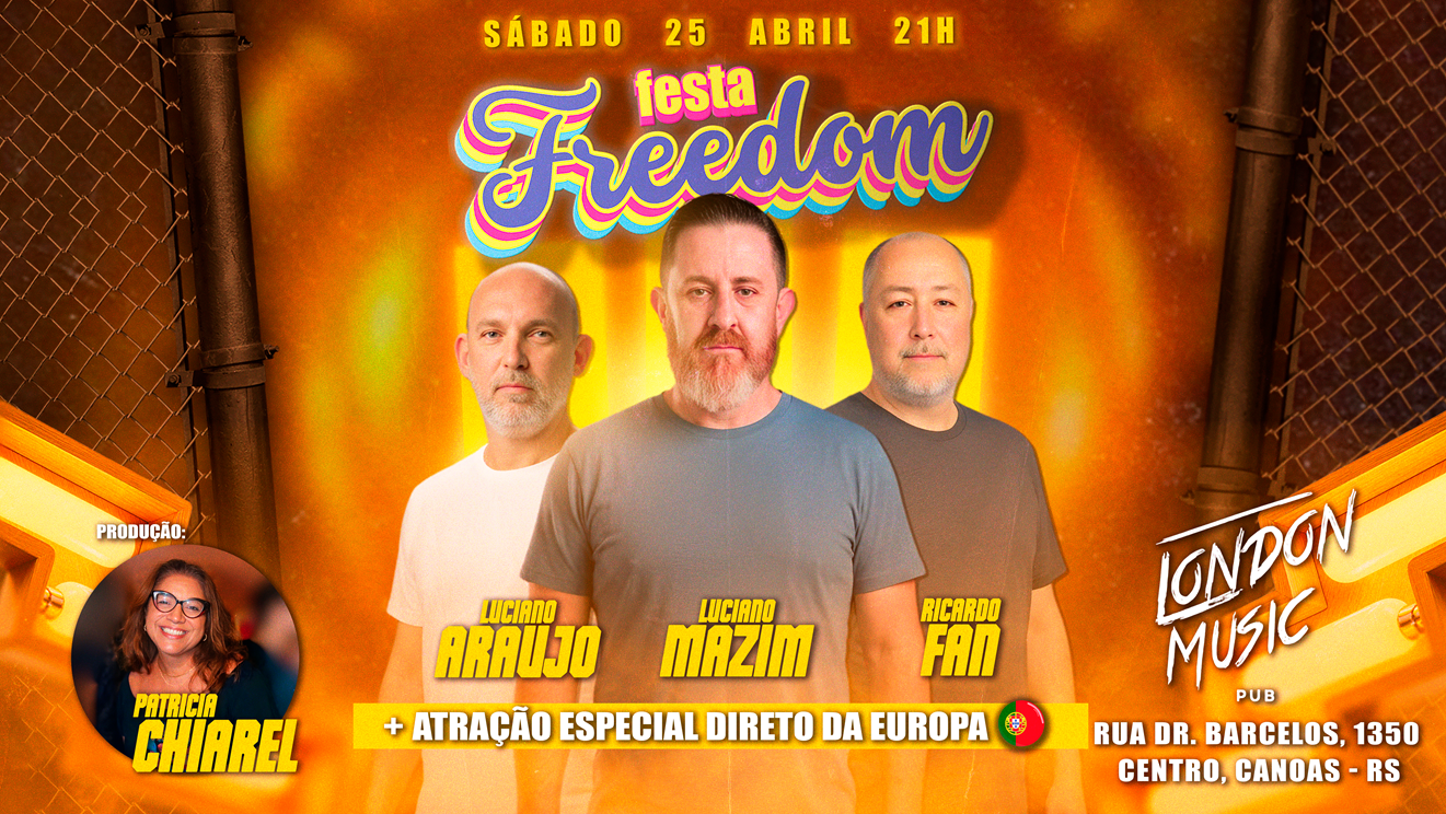 Prepare-se para dançar ao som das décadas de 70, 80, 90 e 2000, em uma noite cheia de energia, nostalgia e atualidade, do jeito que só a Freedom sabe fazer.