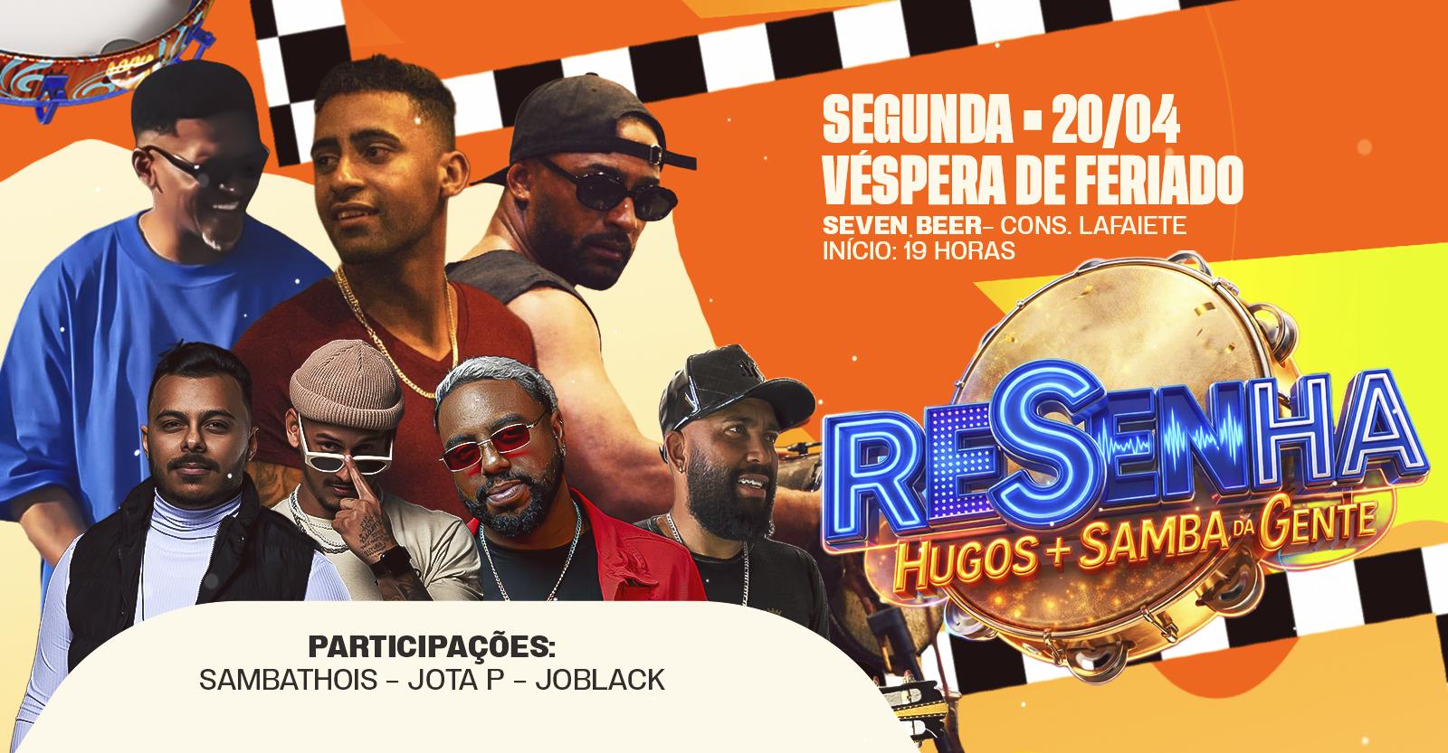 E pra voltar do jeito certo, preparamos uma resenha inesquecível na véspera de feriado! Vem aí Resenha – Hugos + Samba da Gente, com muita música boa, energia lá em cima e aquele clima que só a Seven tem.