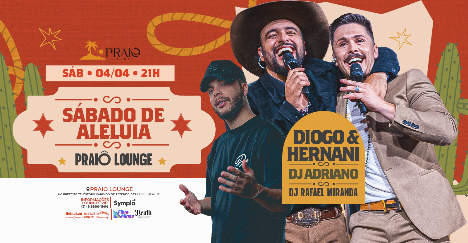Dia 04/04 no PRAIÔ LOUNGE | Cons.Lafaiete MG | 21:00h *SABADÃO de ALELUIA*