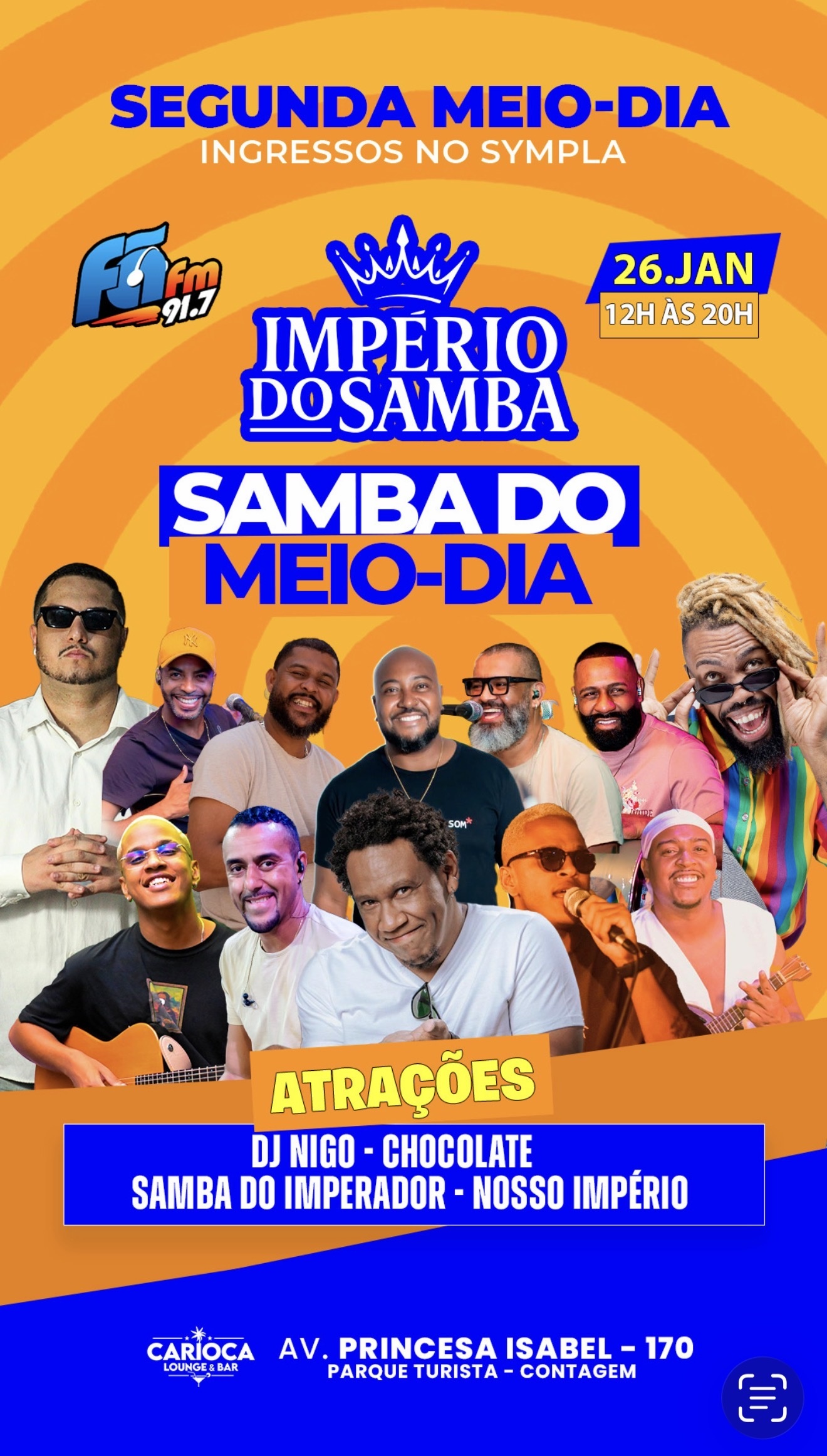 E vai acontecer no próximo segunda-feira 12:00 o Samba do IMPERADOR.