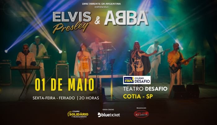ao vivo e harmonia instrumental, representando em grande estilo os maiores clássicos do ícone Elvis Presley. Um espetáculo de arrepiar e uma emocionante viagem no tempo, através da obra e da genialidade do grupo ABBA e do ícone ELVIS PRESLEY. Você vai cantar e se emocionar com 2 shows épicos, com a banda Los Kalas, da Argentina.