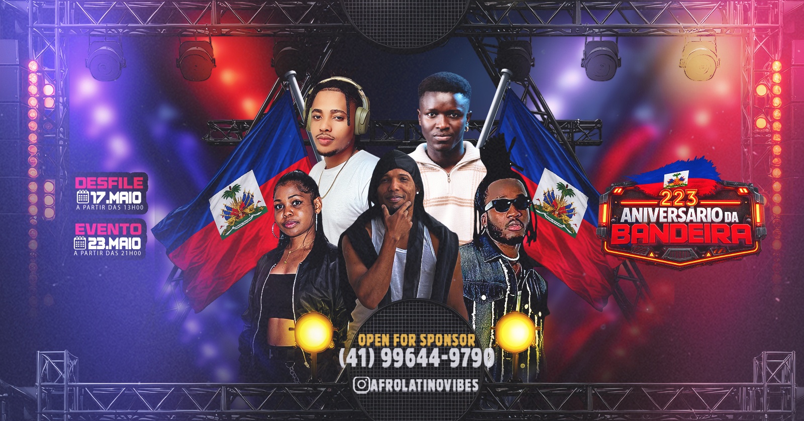 A Afrolatinovibes, em colaboração com ASHBRA e UCEPH, apresenta um MEGA evento cultural no coração de Curitiba em celebração aos 223 anos da bandeira do Haiti.