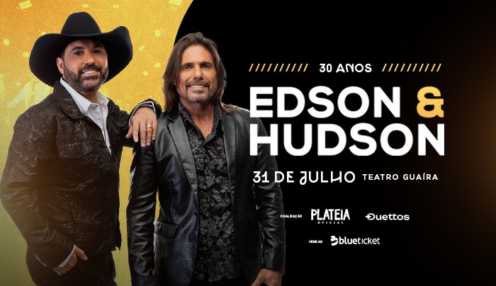 A dupla Edson & Hudson chega a Curitiba com um espetáculo especial que celebra três décadas de uma das trajetórias mais marcantes da música sertaneja brasileira. A apresentação acontece no dia 31 de julho, no Teatro Guaíra, prometendo uma noite repleta de emoção, grandes sucessos e conexão com o público.