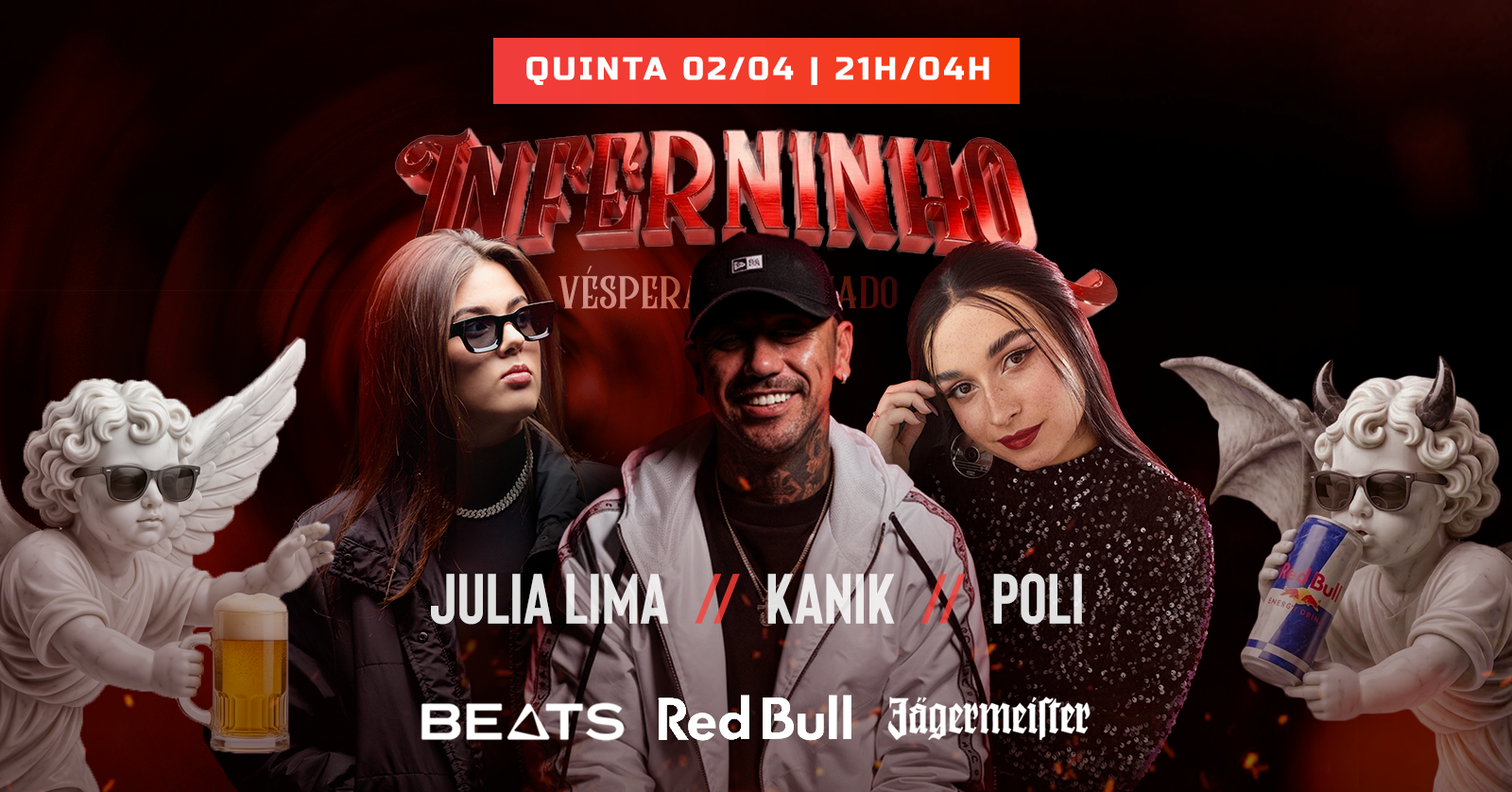 O INFERNINHO domina o Didi Alameda nessa quinta-feira, 02 de Abril (véspera de feriado) com direito a 3 DJs e shots na pista para começarmos o feriadão do melhor jeito!