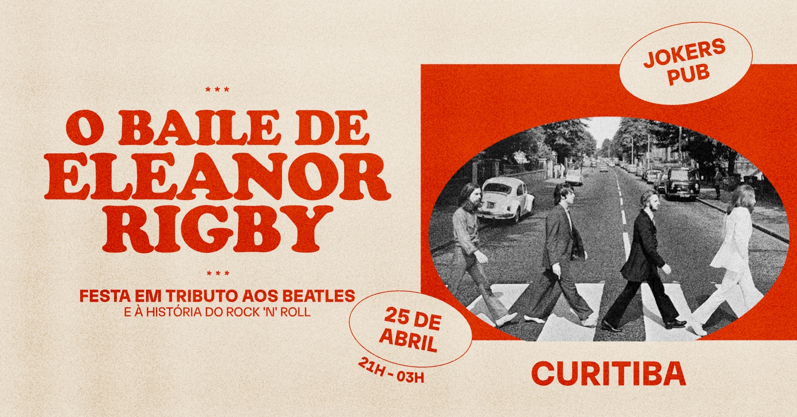 É a décima edição d’O Baile de Eleanor Rigby. Mas nossa primeira vez em Curitiba. Bora fazer bonito pra ter replay?