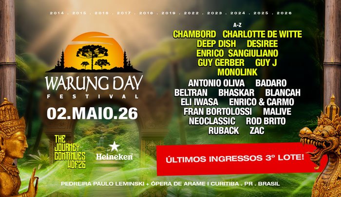 O line-up oficial do Warung Day Festival 2026 está anunciado. Seguimos firmes no propósito de entregar uma experiência inesquecível, reunindo grandes nomes da música eletrônica nacional e internacional em um encontro que celebra a música, a natureza e a história do Templo.