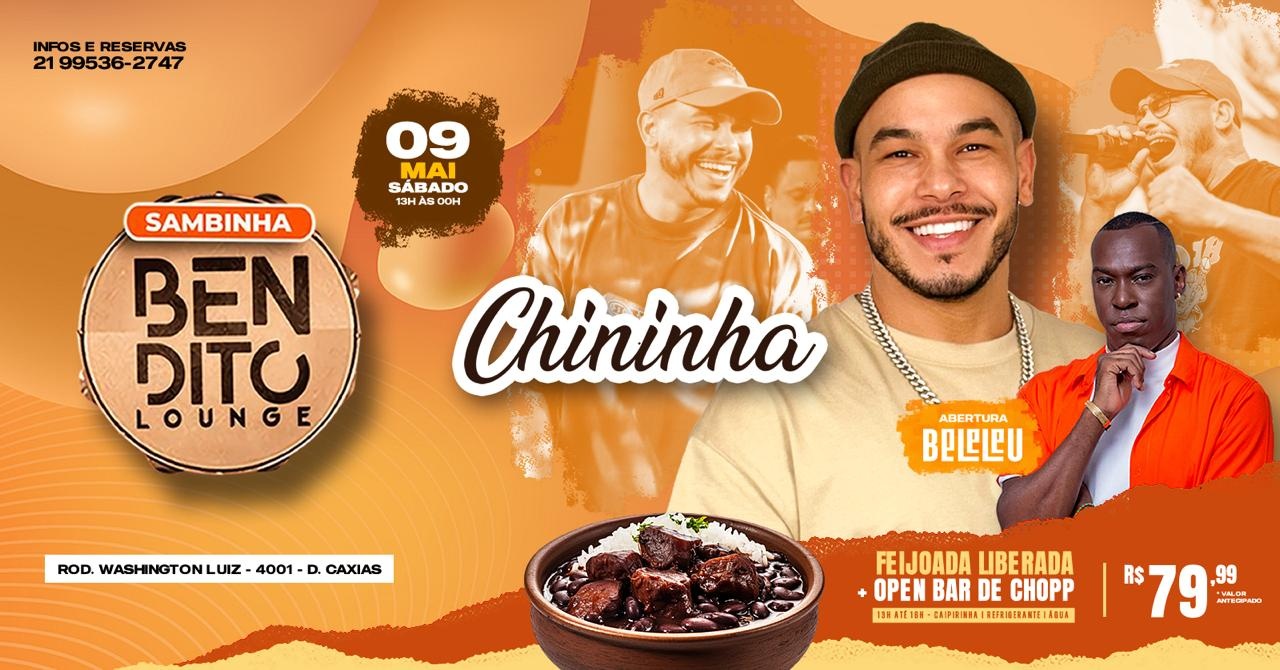 A feijoada com OPEN BAR mais famosa de todo o rio e baixada recebe mais uma vez o cantor e compositor CHININHA .