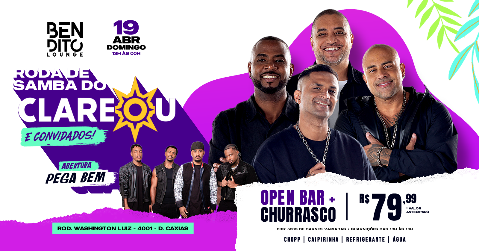 O Sucesso Continua com a Roda De Samba Mais Querida do Brasil. Teremos uma estreia na nossa roda de samba fazendo uma participação mais que especial vamos receber na nossa roda de samba a rapaziada do grupo BALACOBACO diretamente do PAGODE E CHINELO. E isso mesmo, vamos curtir o clima de uma das maiores roda de samba do Rio. Vamos juntos curtir essa tarde e noite de muito samba e pagode?? E a ainda, CHURRASKADA + OPEN BAR, CHURRASCO servindo 500g de carnes variadas POR PESSOA + GUARNIÇÕES. e mais OPEN BAR de Chopp, água , caipirinha e refrigerante das 13h as 16h. funcionamento da casa e ate as 00h Ingressos sem open bar e sem churrasco só entram no evento após as 16h, mediante lotação da casa. ATENÇÃO; Aniversariantes e convidados deverão comprar os ingressos da churrascada antecipado, para garantirem a promoção de aniversário.