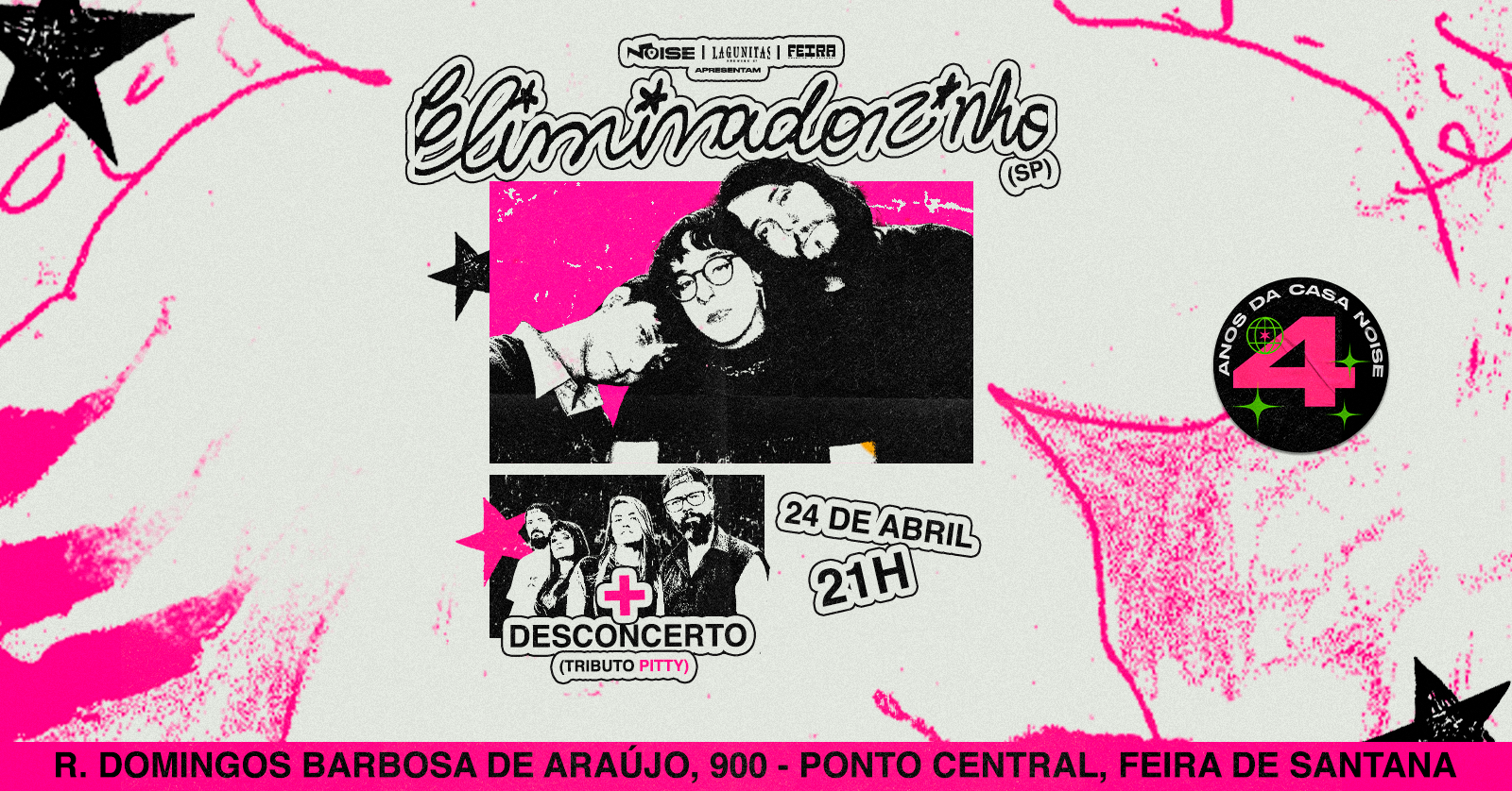 No dia 24 de abril, a Casa Noise recebe a banda Eliminadorzinho, de São Paulo, e a Desconcerto, de Feira de Santana, em uma noite dedicada ao rock alternativo, guitarras marcantes e música independente no volume certo.