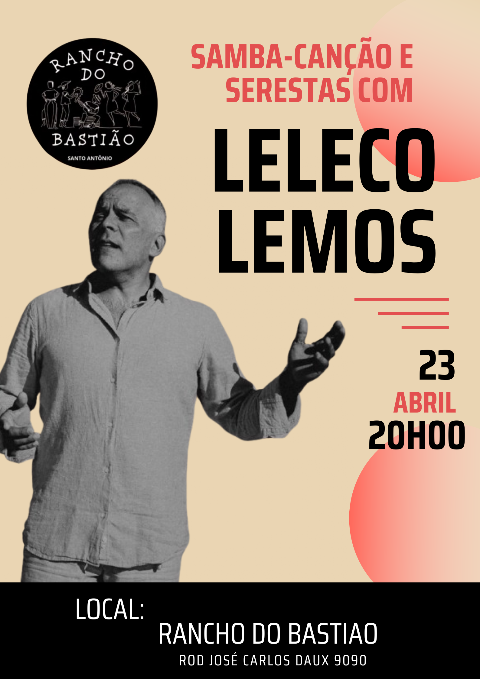 No dia 23 de abril, o Rancho do Bastião recebe o músico Leleco Lemos, referência na cena musical de Florianópolis, para uma noite especial de samba-canção e serestas.