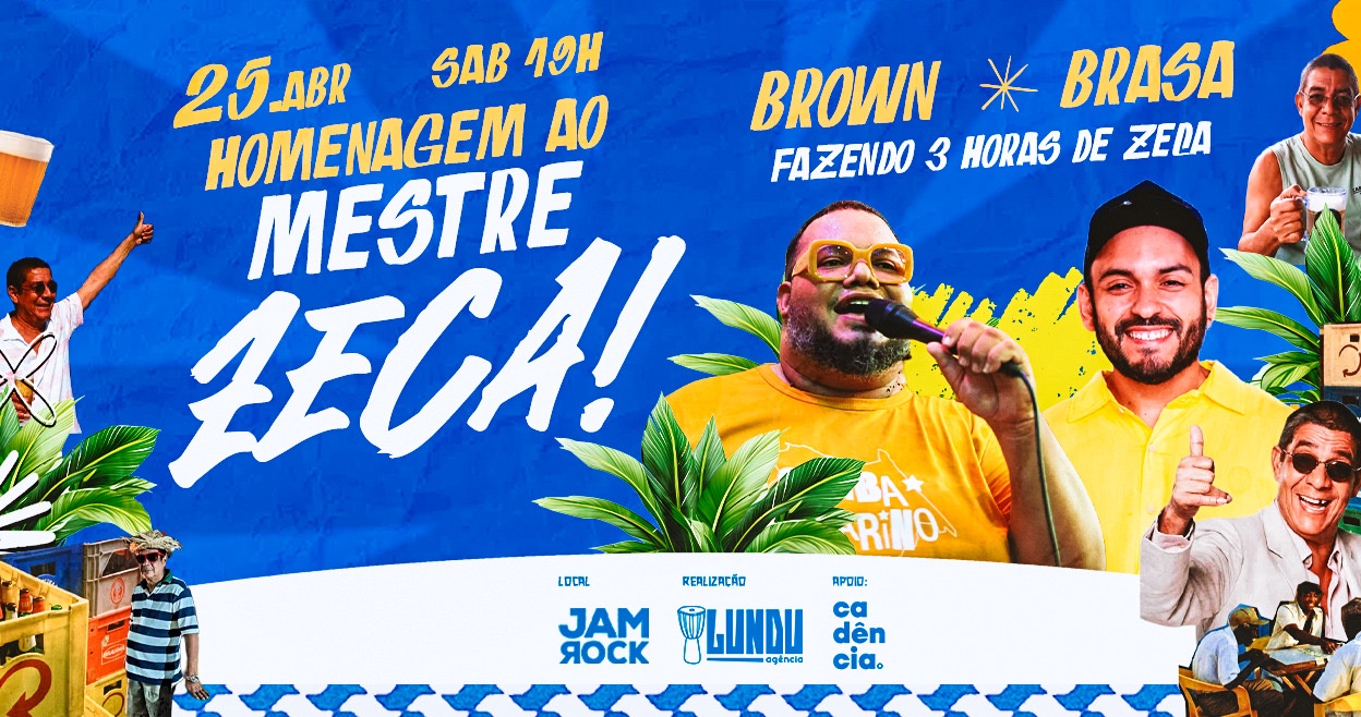 Tu já ouviu falar do "BROWNSA"? É Brown + Brasa, bebê, fazendo 03 horas de Zeca Pagodinho nos couro, com direito ao Lado B da parada. Uma noite para exaltarmos toda a musicalidade e malandragem do homenageado da noite.