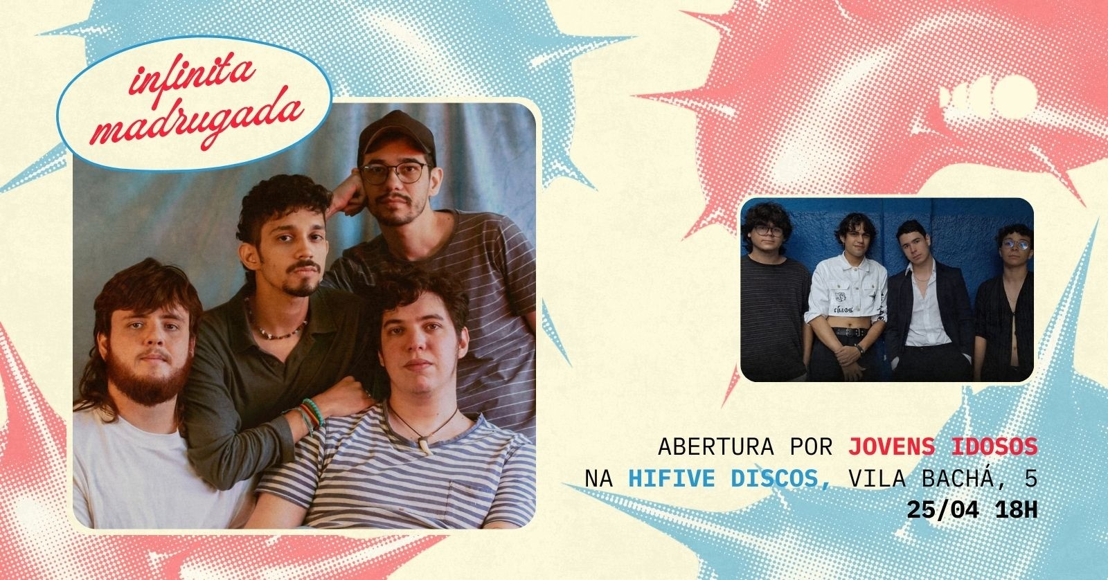 No dia 25 de abril, a banda Infinita Madrugada se apresenta na HiFive, em Fortaleza. A abertura do evento será realizada pela banda Jovens Idosos.
