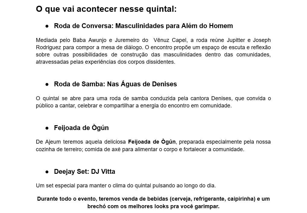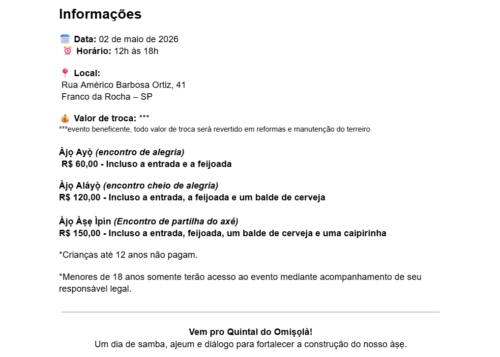 * A feijoada sera servida nos seguintes horarios: 12h00 á 13h00 - 14h15 ás 16h00