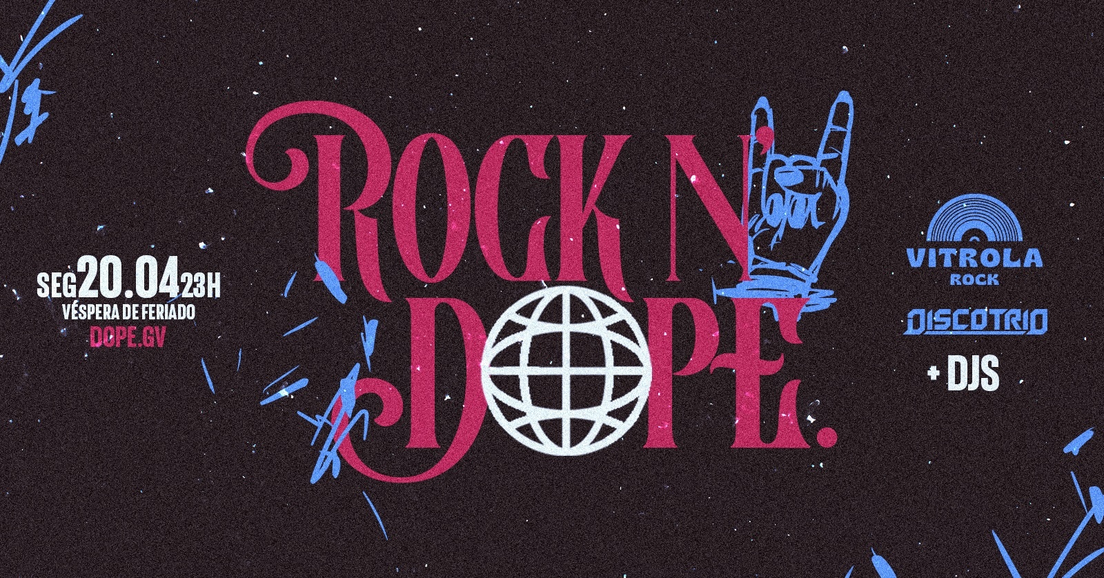 Pois, tá entregue! No dia 20, véspera de feriado tem a estreia do ROCK'N DOPE com as bandas Vitrolla Rock e Discotrio + DJs. Bora?