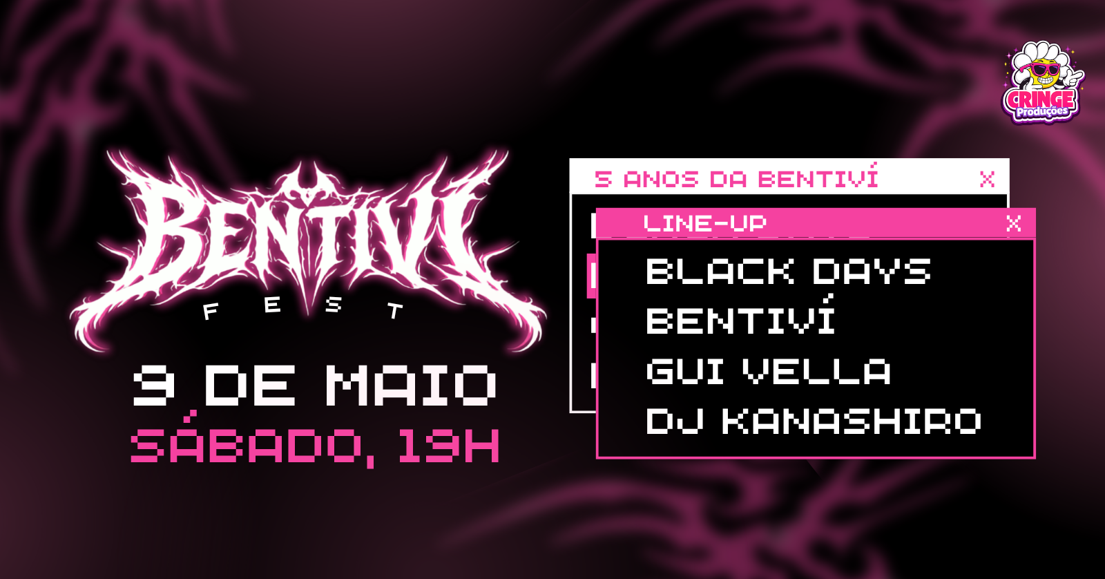 O Bentiví Fest celebra 5 anos da banda Bentiví com um evento especial que reúne peso, emoção e energia da cena alternativa.