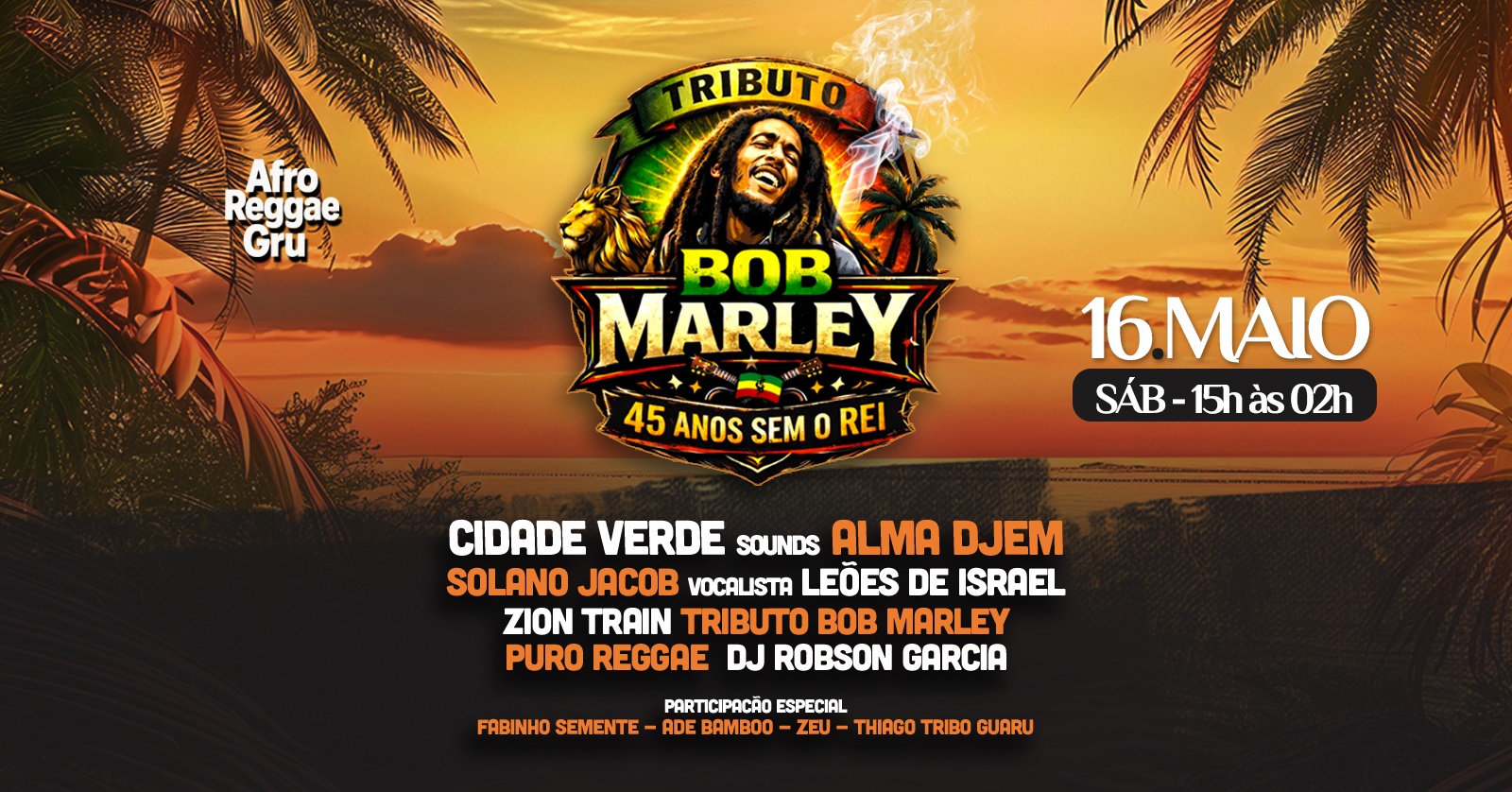 Um evento especial pra celebrar o legado de BOB MARLEY com muita música, energia positiva e conexão verdadeira.