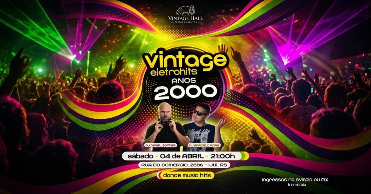 A primeira foi histórica… a segunda vai ser ainda maior. A Festa Flashback 80 e 90 está de volta ao Vintage Hall — e se você viveu, sabe… se não viveu, vai sentir na pele o que é uma pista de verdade. Prepare-se para uma noite de nostalgia, energia e clássicos que marcaram gerações. Aquela vibe que começa com um hit… e quando você vê, já perdeu a noção do tempo. DJ Daniel Sommer comandando a pista com os maiores sucessos da Dance Music Roberto Bones ao vivo trazendo aquela pegada inesquecível do Pop/Rock Ingressos no Sympla ou via Pix 11 de abril | Sábado | 21h Rua do Comércio, 2686 – Ijuí/RS Reserva de Mesas e Informações: (55) 99952-6925