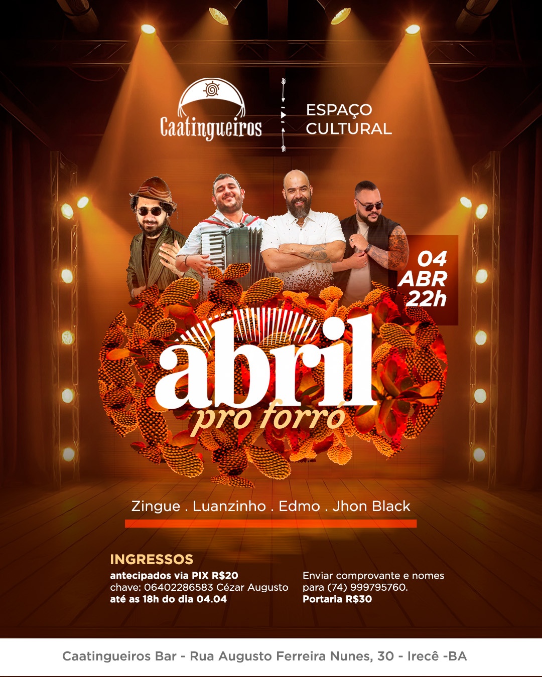 Dia 04/04, às 22h, tem “Abril Pro Forró” no Espaço Cultural Caatingueiros