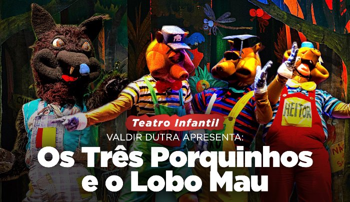 As primeiras edições deste clássico conto da literatura infantil datam do século XVIII, mas imagina-se que esta seja uma história muito mais antiga e começa mais ou menos assim... Este texto, adaptado pelo Grupo Teatral Independente, é sucesso de bilheteria no estado de Santa Catarina desde a estreia do espetáculo, em 1979. São 45 anos garantindo diversão em tamanho família com a aventura de três porquinhos irmãos que gostavam muito de música: Cícero, Heitor e Prático.