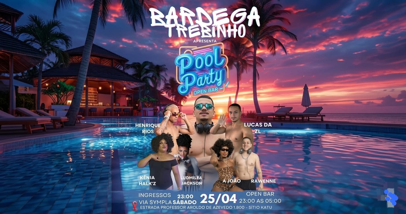 Prepare o seu melhor look de piscina e venha viver uma experiência inesquecível! A Bardega do Trebinho apresenta a edição mais quente da temporada: nossa Pool Party Open Bar.