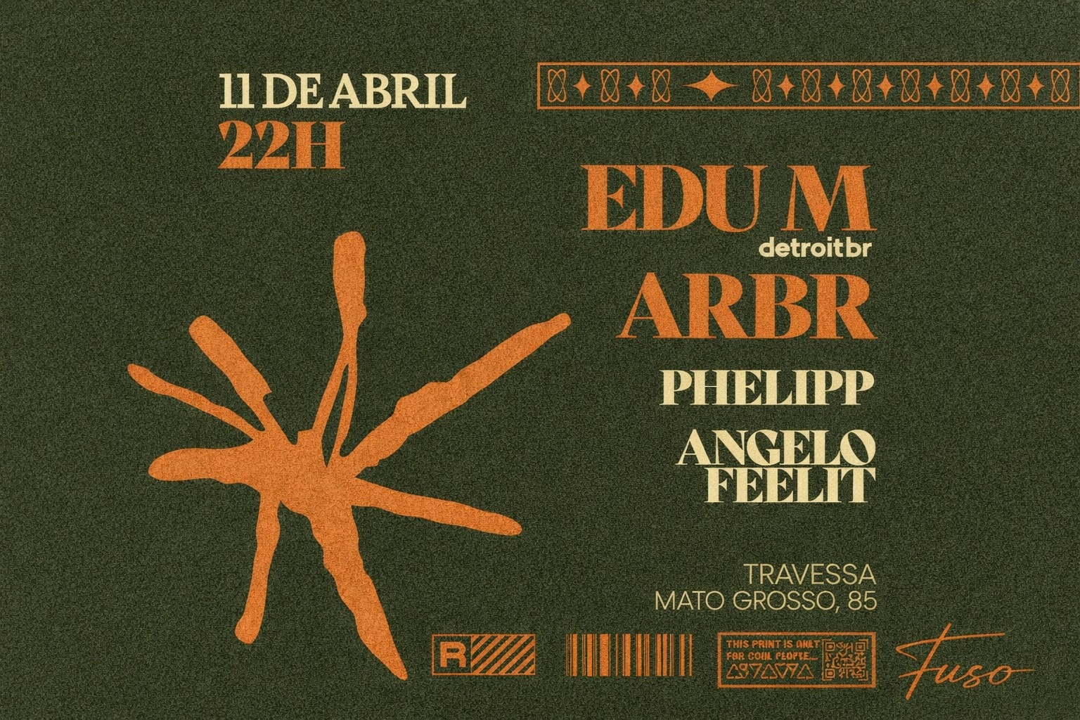 Neste sábado, 11 de abril, o Fuso volta a se alinhar às vertentes do Techno para uma noite guiada por profundidade sonora e alta qualidade musical.