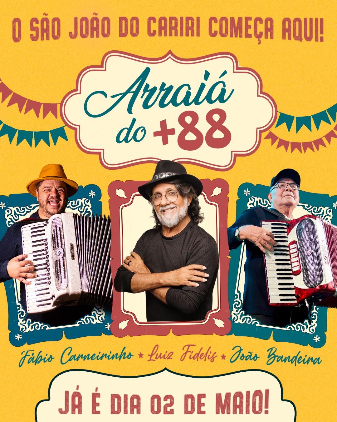 O Arraiá do +88 abre a temporada junina do Cariri e nesse ano traz o forró raiz de Fabio Carneirinho, Luiz Fidelis e João Bandeira.