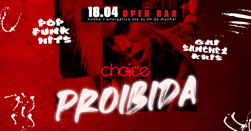 Vocês pediram… e a 3ª edição da CHOICE PROIBIDA vem ainda mais intensa, com OPEN BAR de vodka + energético até às 4h!