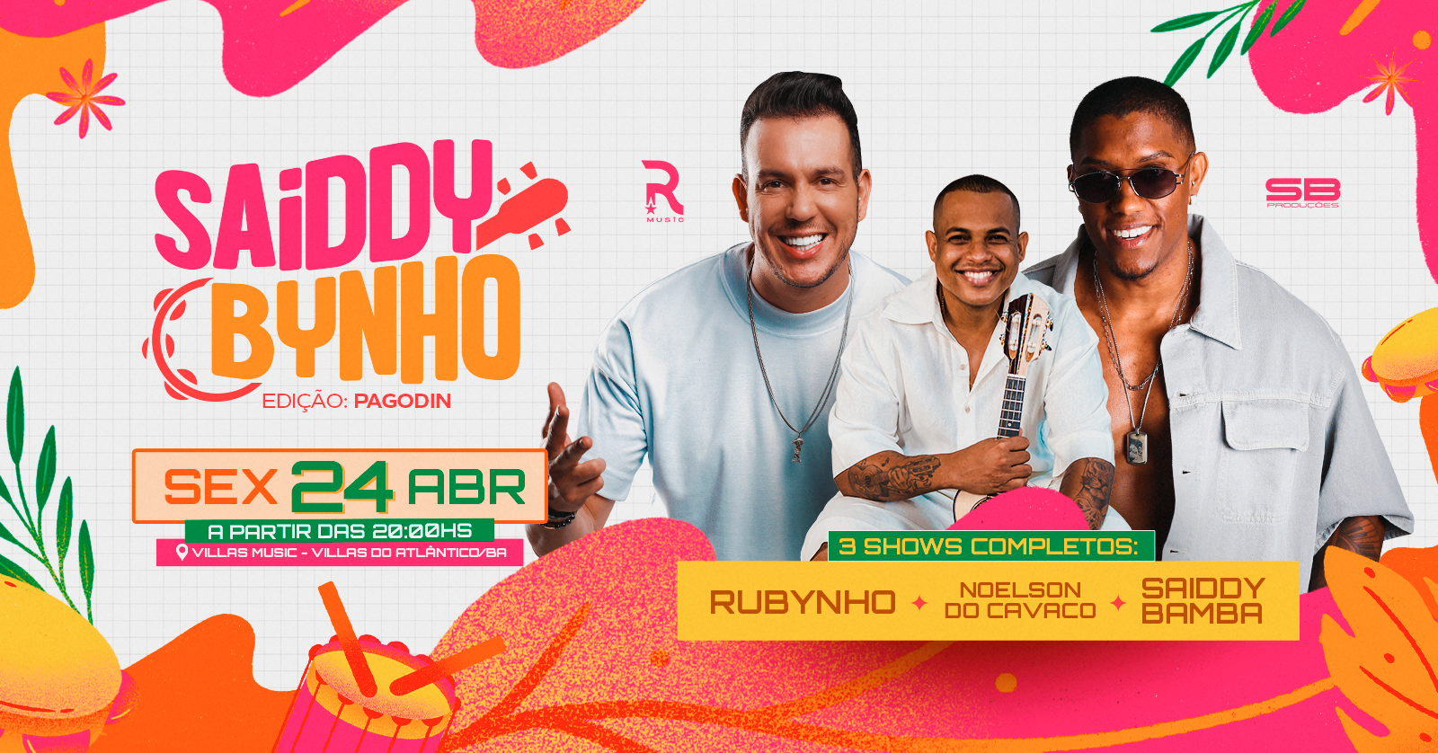 O SAIDDYBYNHO reúne no mesmo palco Rubynho e Saiddy Bamba, em uma noite de muito swing, energia e aquele repertório que não deixa ninguém parado.