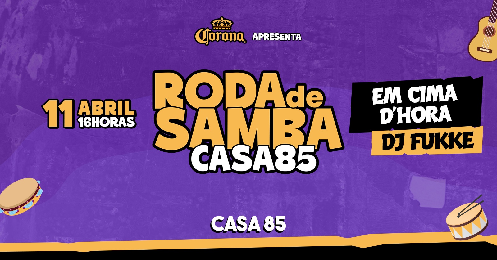 Dia 11/04 tem Casa 85 com o grupo Em Cima da Hora e o DJ Fukke comandando a vibe.