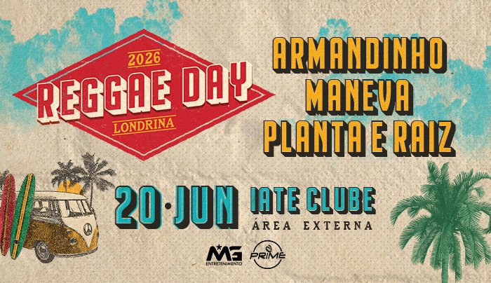 O Reggae Day Londrina promete embalar a cidade com muita vibração positiva e grandes sucessos. No dia 20 de junho (sábado), a partir das 14h, a área externa do Iate Clube será palco de um grande encontro da música brasileira com três dos principais nomes do reggae no país: Armandinho, Maneva e Planta e Raiz.