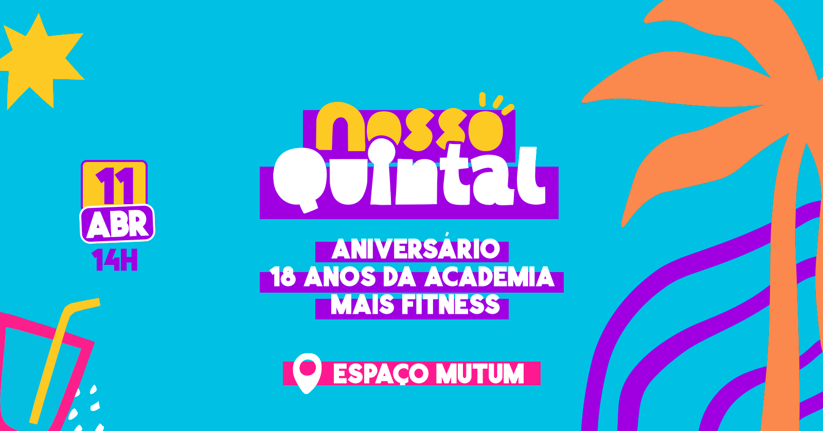 No dia 11.ABR, o Nosso Quintal recebe uma edição especial para celebrar os 18 anos da Academia Mais Fitness em grande estilo!
