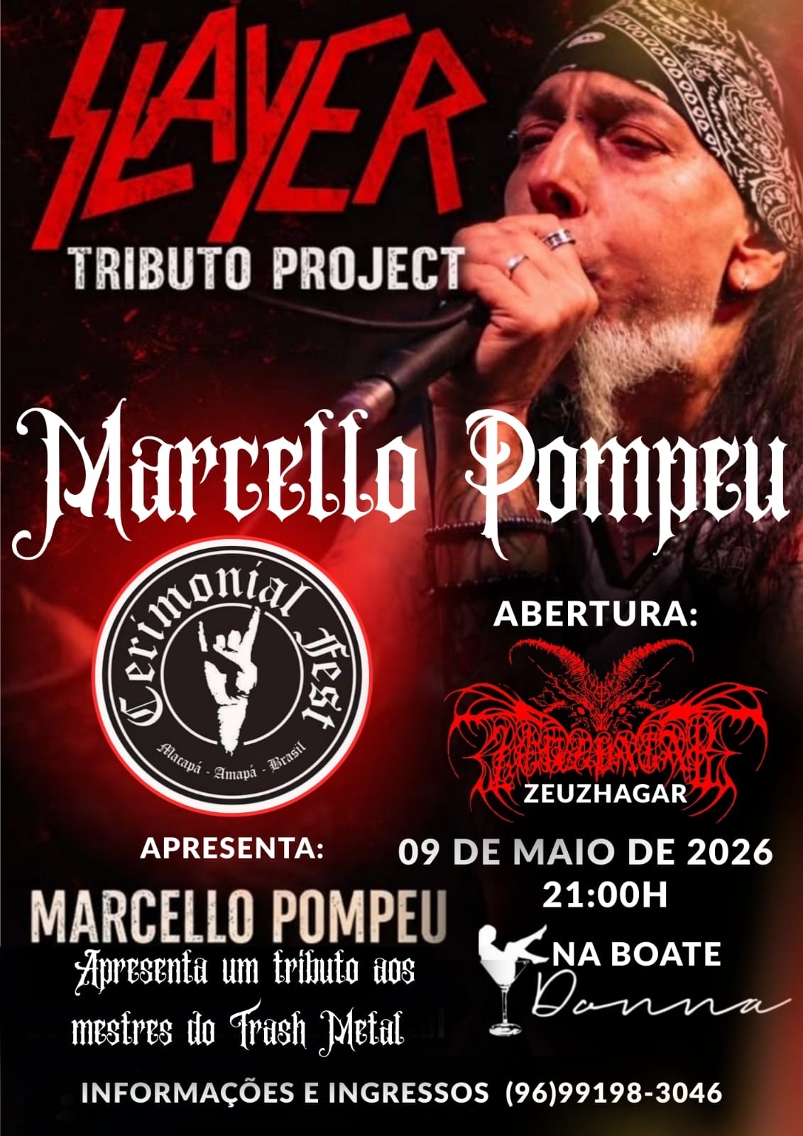 O lendário Slayer ganha vida em um tributo insano, com Marcello Pompeu trazendo toda a energia brutal que marcou gerações, com seu projeto solo Slayer Tribute.