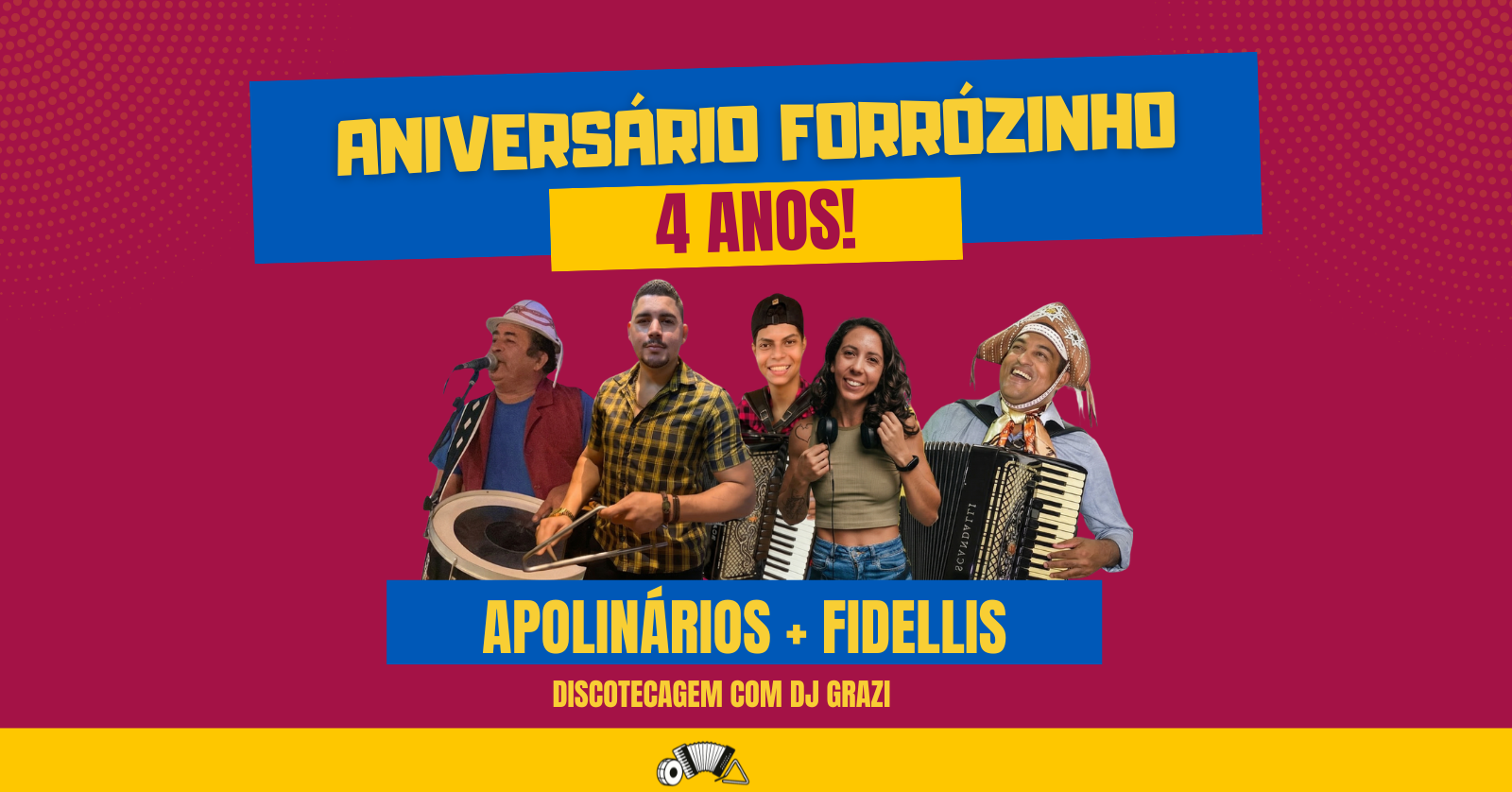 Cada passo dado no salão, cada abraço e cada música tocada construíram o que somos hoje! E para comemorar esses anos de resistência e alegria, preparamos um aniversário do jeito que a gente ama: com aquele forró pé de serra raíz!