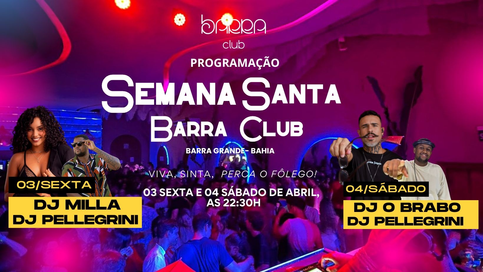 No sábado de Aleluia, é dia de jogar pro alto: DJ O Brabo + DJ Pelegrine trazendo aquele sabadão que a gente respeita — música boa, gente bonita e uma atmosfera que só o Barra Club tem.