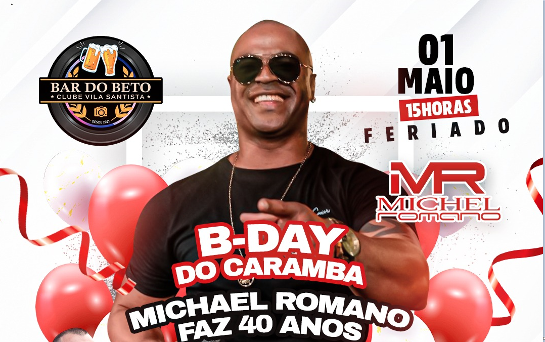 No dia 01 de maio, feriado, tem comemoração especial no Bar do Beto! Vamos celebrar o aniversário do Michel Romano em uma tarde/noite de muita música, alegria e aquela resenha que todo mundo gosta.