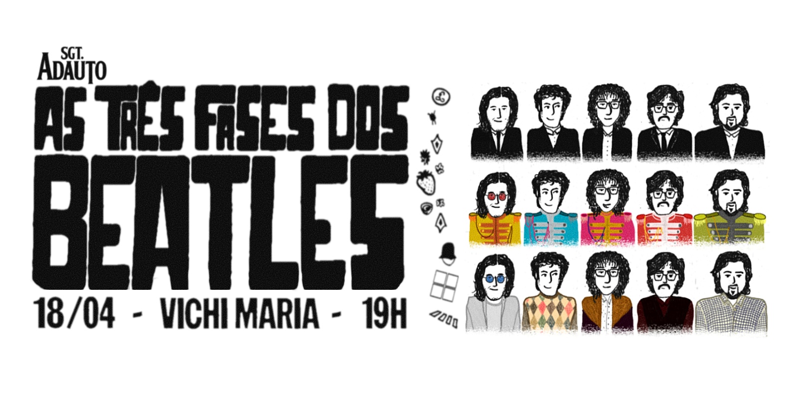 Este será o show definitivo para reviver toda a trajetória dos Beatles, com figurinos e instrumentos iguais aos do quarteto de Liverpool, em um lugar extremamente aconchegante e com o som que vocês merecem. Aliás, o nosso slogan é "de beatlemaníaco para beatlemaníaco". Então, você que conhece desde o "Please, Please Me" ao "Abbey Road", não perca! De verdade, pois não haverá outra oportunidade.