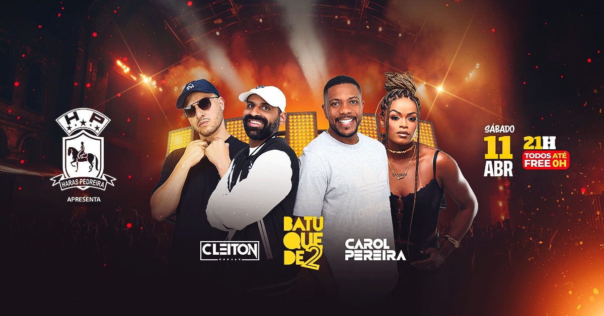 Dia 11 de abril, a partir das 21h, o Haras Pedreira vai ferver com Batuque de 2, Carol Pereira e Cleiton DJ