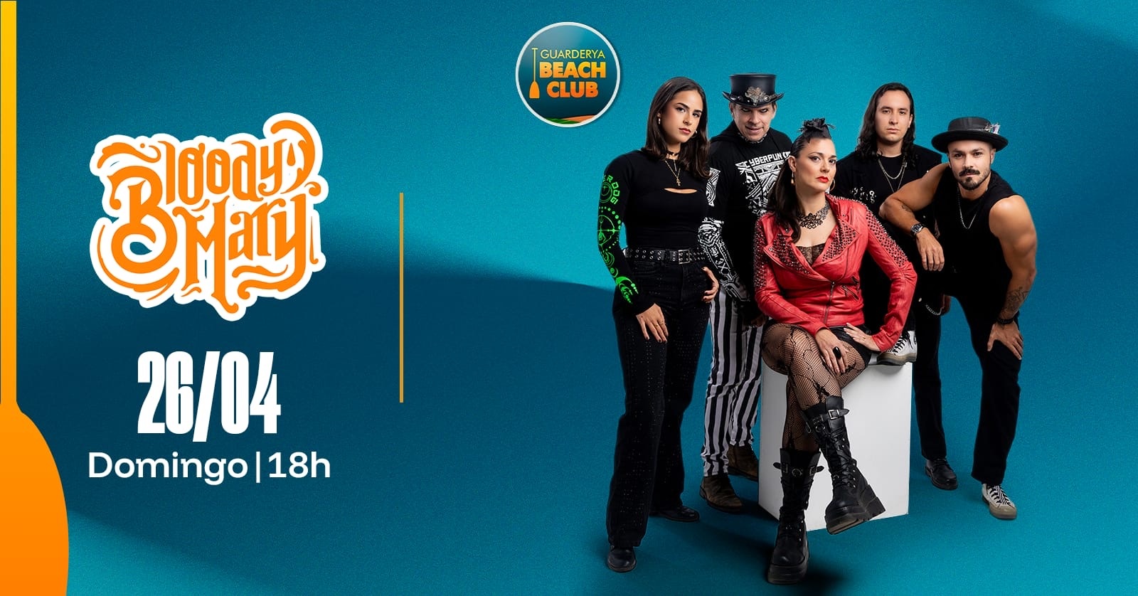 No dia 26 de abril, o Guarderya Beach Club vai ferver com o show da BloodyMary — uma noite intensa, cheia de atitude, rock e energia do início ao fim!