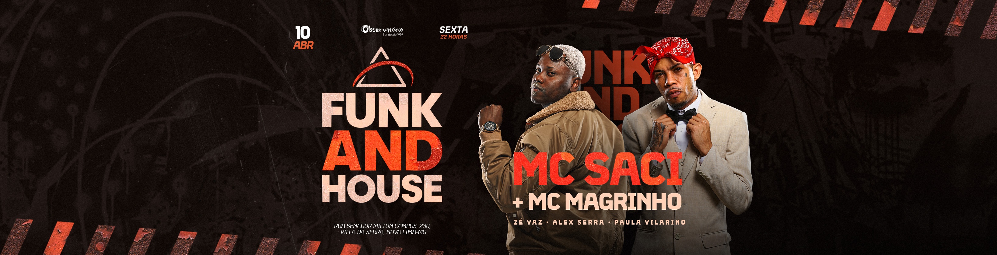 Prepare o coração (e os pés), porque a mistura perfeita chegou ao Observatório! Na próxima sexta-feira, dia 10 de abril, vamos unir o grave do funk com o groove do house em uma noite inesquecível.