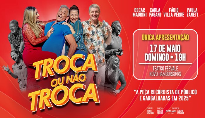 Com humor ácido, erotismo leve e situações hilárias “TROCA OU NÃO TROCA” leva o público a rir das próprias contradições e a se perguntar: até onde você iria para salvar o desejo?