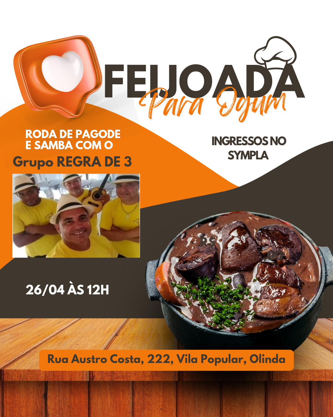 No dia 26 de abril a partir das 12h realizaremos um evento muito especial, nossa Feijoada para Ogum com pagode e samba, aqui no CEVIP.