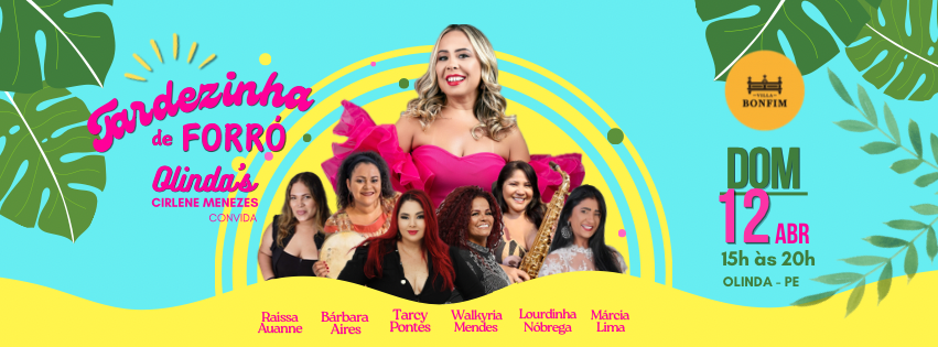 A espera acabou! Vamos para a 3ª edição do TARDEZINHA DE FORRÓ | OLINDA’S. Desta vez, com um show só de mulheres para evidenciar a força feminina de artistas pernambucanas que constroem, de forma autônoma, uma brilhante trajetória no cenário do forró.