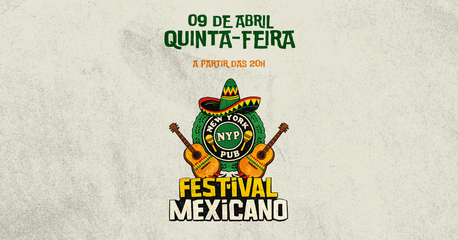 O Festival Mexicano está de volta no New York Pub… e voltou com tudo! Agora em novo horário, a partir das 20h, pra você chegar cedo, já entrar no clima e viver a experiência completa O formato que todo mundo ama continua: Sequência de porções servidas das 20h às 23h - tudo feito na hora, saindo quentinho e no ritmo perfeito de um happy hour, pra você comer bem sem perder nenhum momento da noite. E tem mais… 2 shots free de Margarita pra entrar no clima mexicano Promoções de drinks e Heineken Música ao vivo + transmissão de jogos E toda aquela atmosfera envolvente que transforma o Pub em um pedacinho do México E o melhor: as porções já estão inclusas no valor de entrada É pra chegar, curtir, comer, brindar e viver a vibe do New York como você já conhece; só que agora com ainda mais energia A casa abre às 20h Chama a galera e vem viver essa experiência com a gente!