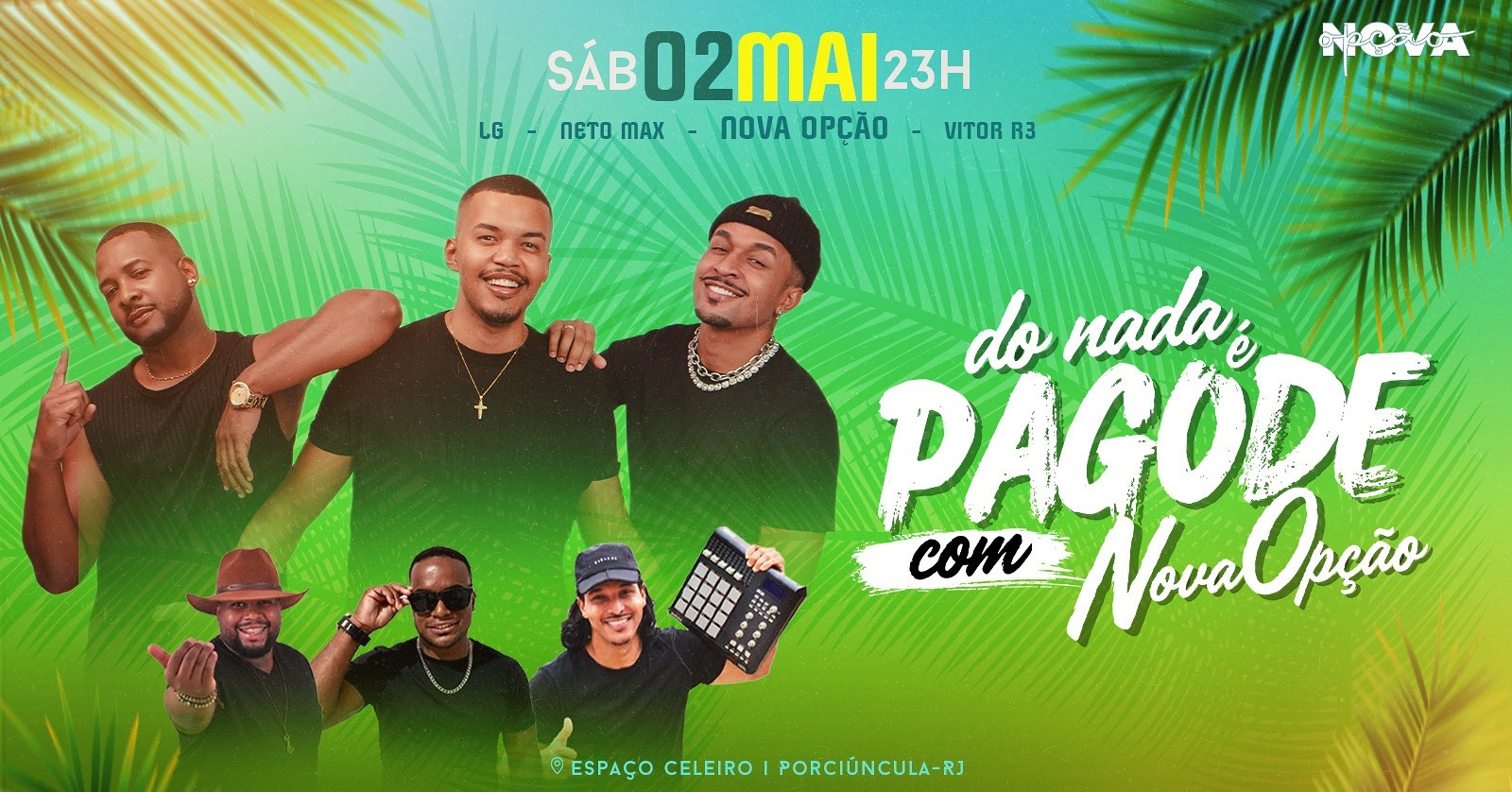 No comando da noite, os caras do NOVA OPÇÃO chegam trazendo só pedrada — é hit atrás de hit, pra cantar, sofrer, brindar e se jogar sem pensar no amanhã!