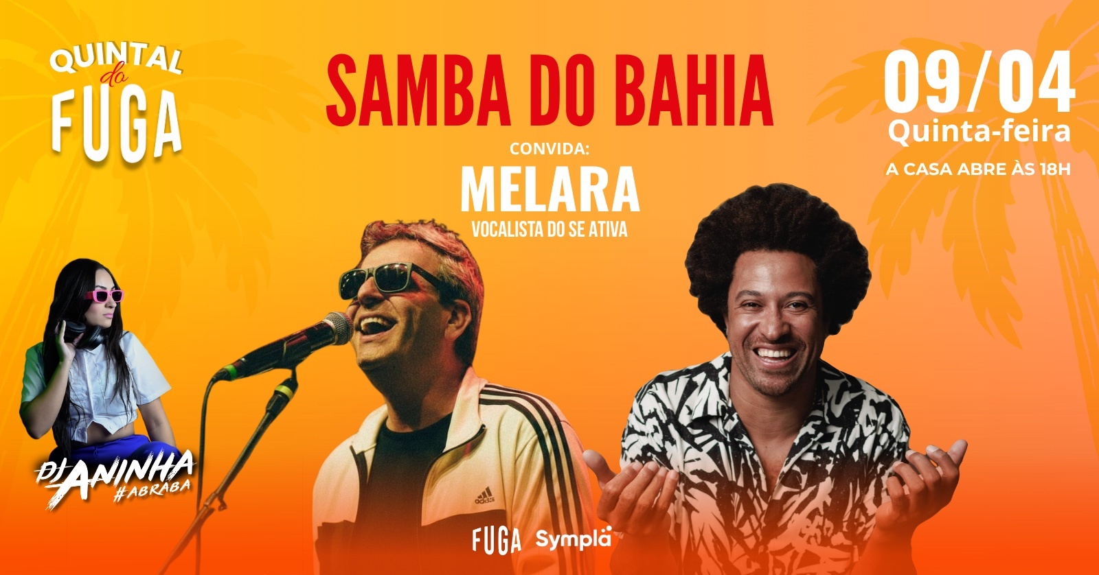 A roda é comandada pela cadência inconfundível do Samba do Bahia com participação especial de peso: Melara (vocalista da banda Se Ativa). Nos intervalos e no after, a braba Dj Aninha, segurando a vibe lá no alto.