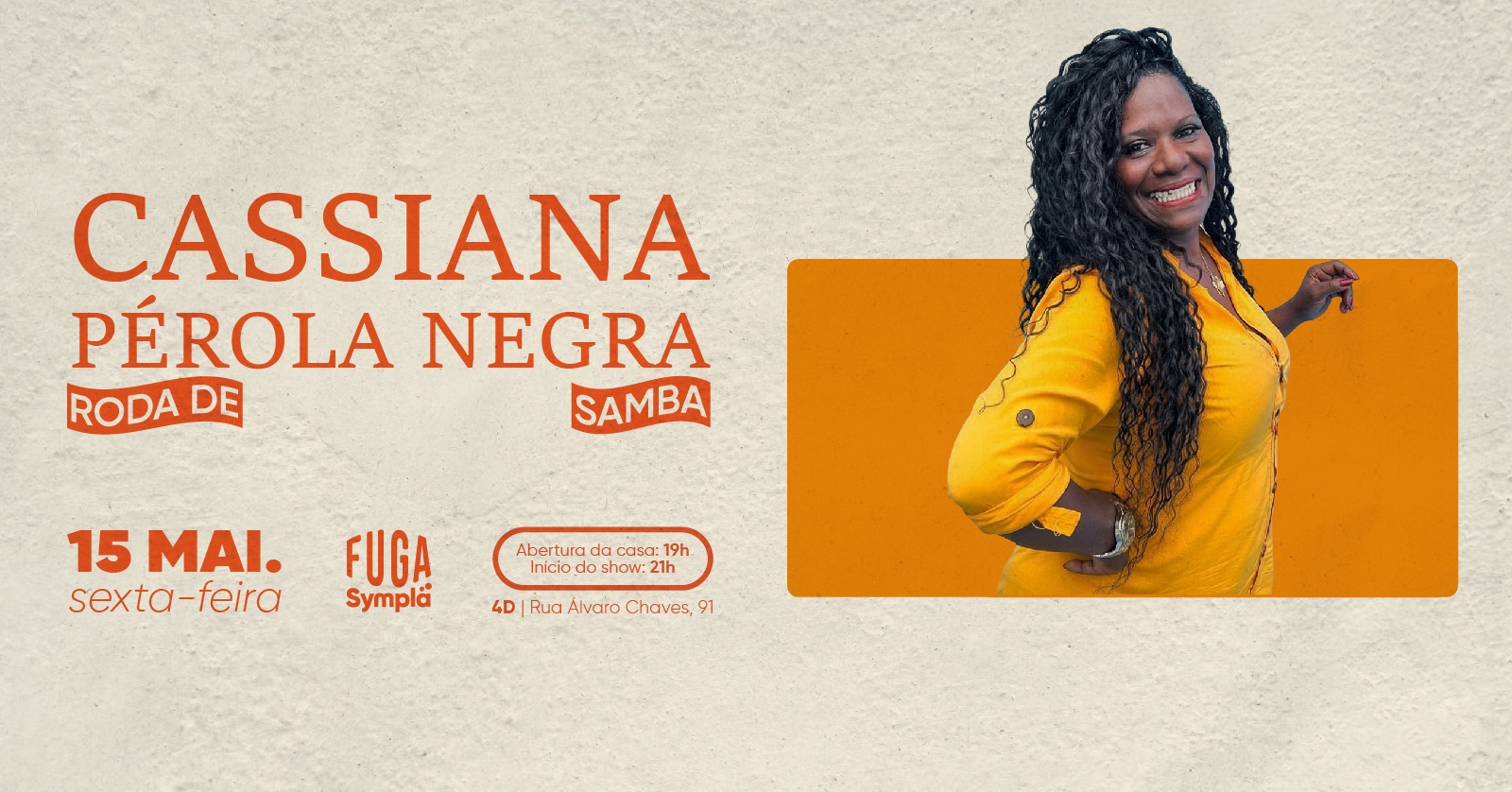 No dia 15 de maio, o Fuga do 4º Distrito recebe Cassiana Pérola Negra para uma roda de samba autêntica, de raiz carioca, celebrando Jovelina e outros clássicos que marcaram gerações.