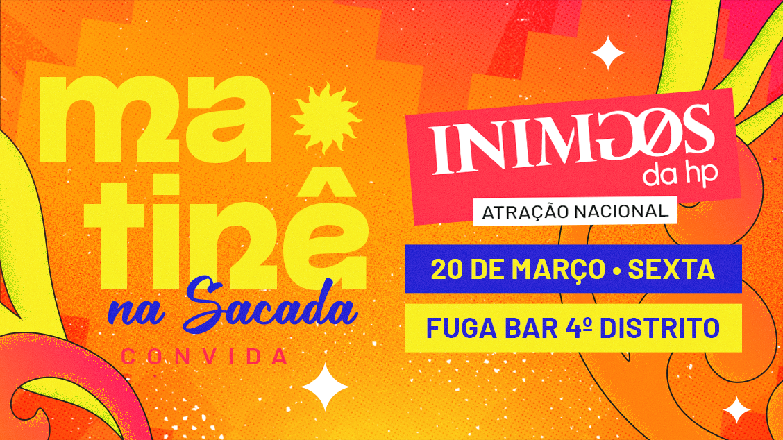 No dia 20 de março, o Fuga Bar, no 4º Distrito, vai ser o palco de uma noite inesquecível, com Na Sacada e Inimigos da HP em um único evento! Uma verdadeira viagem no tempo, com os maiores sucessos do pagode dos anos 90 e 2000.