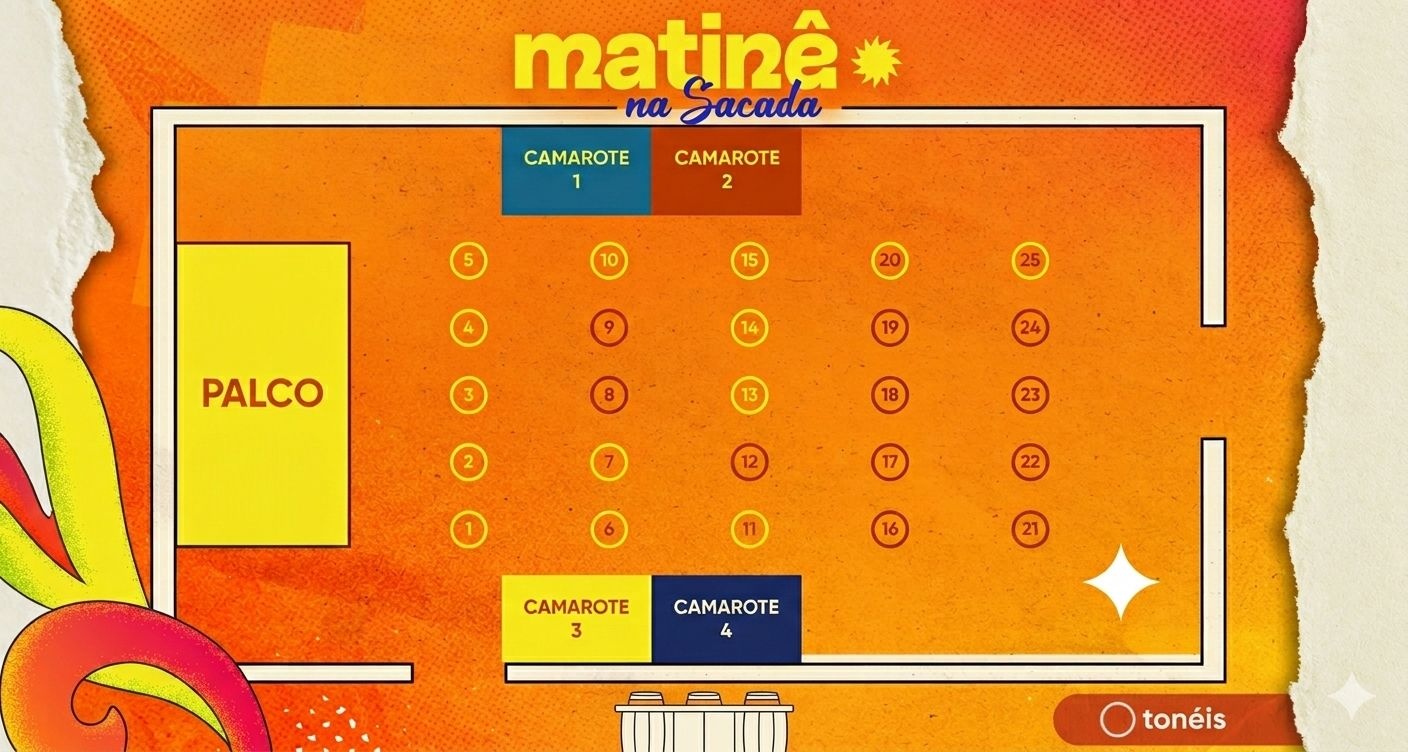 Segue o mapa das mesas e camarotes: