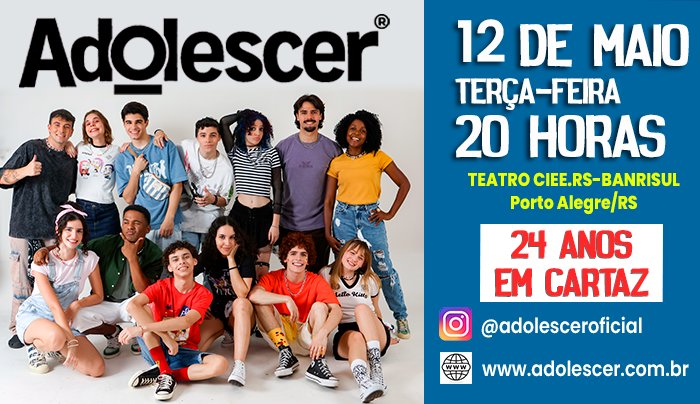 Um dos espetáculos mais queridos pelo público jovem completa 24 anos neste mês de maio. Adolescer retorna aos palcos de Porto Alegre, com elenco renovado, novas cenas